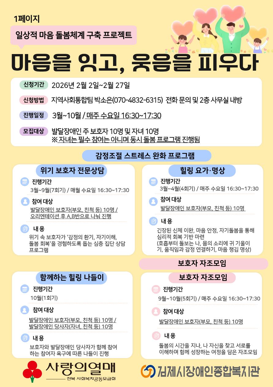¹Ýº¹µÇ´Â ÀÏ»ó°ú µ¹º½¿¡ ÁöÄ£ º¸È£ÀÚ´ÔÀ» À§ÇØ, ¿ÀÁ÷ '³ª'¸¦ µ¹º¸´Â¡¸ÀÏ»óÀû ¸¶À½ µ¹º½Ã¼°è ±¸Ãà ÇÁ·ÎÁ§Æ®¡¹¸¦ ½ÃÀÛÇÕ´Ï´Ù.