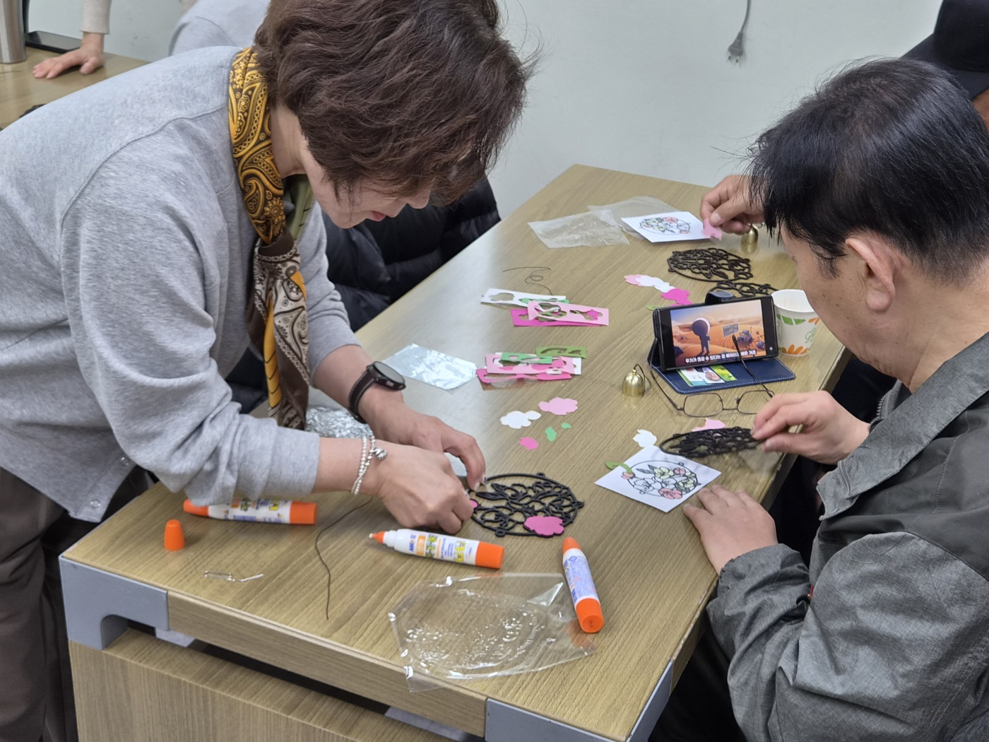 ¿À´Ã º¹Áö°ü¿¡¼´Â ÀÌ¿ëÀεé°ú ÇÔ²² ÂüÇູ±³½Ç °ø¿¹¼ö¾÷(ÇÑÁö dz°æµî ¸¸µé±â)À» ÁøÇàÇϸç ÀÇ¹Ì ÀÖ´Â ½Ã°£À» º¸³Â½À´Ï´Ù. üÇè¿¡ ¾Õ¼ ÀÌ¿ëÀκеéÀº °£½ÄÀ» ÇÔ²² ³ª´©¸ç Ȱµ¿ ¹æ¹ý°ú ÁøÇà °úÁ¤¿¡ ´ëÇÑ ¼³¸íÀ» µé¾ú½À´Ï´Ù. ÀÌÈÄ ÇÑÁö¸¦ ÀÌ¿ëÇÏ¿© ¸ð¾çƲ¿¡ ¸ñ°øÇ®·Î ºÙÀ̰í Àå½ÄÀ» ´õÇØ dz°æµîÀ» ¸¸µå´Â ½Ã°£À» °¡Á³½À´Ï´Ù. óÀ½¿¡´Â ÀÛ¾÷ °úÁ¤¿¡ ´Ù¼Ò ¾î·Á¿òÀ» ´À³¢´Â ¸ð½Àµµ ÀÖ¾úÀ¸³ª, Á¡Â÷ Àͼ÷ÇØÁö¸é¼ °¢ÀÚ °³¼ºÀ» »ì¸° ÀÛǰÀ» ¿Ï¼ºÇØ ³ª°¬½À´Ï´Ù. ƯÈ÷ ÇÑÁö¸¦ ºÙÀ̰í Á¾À» ´Ù´Â °úÁ¤¿¡¼ ÁýÁßÇÏ´Â ¸ð½ÀÀÌ µÎµå·¯Á³À¸¸ç, ¿Ï¼ºµÈ dz°æµîÀ» º¸¸ç ¸¸Á·°¨°ú ¼ºÃë°¨À» Ç¥ÇöÇÏ¿´½À´Ï´Ù. Âü¿©ÀÚµé »çÀÌ¿¡¼µµ ¼·ÎÀÇ ÀÛǰÀ» °øÀ¯ÇÏ¸ç ±àÁ¤ÀûÀÎ ¹ÝÀÀ°ú ¿ôÀ½ÀÌ À̾îÁ³½À´Ï´Ù. ÀÌ·¯ÇÑ È°µ¿À» ÅëÇØ ÀÌ¿ëÀεéÀº âÀÇÀûÀΠǥÇöÀÇ ±âȸ¸¦ °¡Áö¸ç Áñ°Å¿î ½Ã°£À» º¸³¾ ¼ö ÀÖ¾ú°í, ¸ðµÎ¿¡°Ô µû¶æÇϰí ÀÇ¹Ì ÀÖ´Â ½Ã°£ÀÌ µÇ¾ú½À´Ï´Ù.